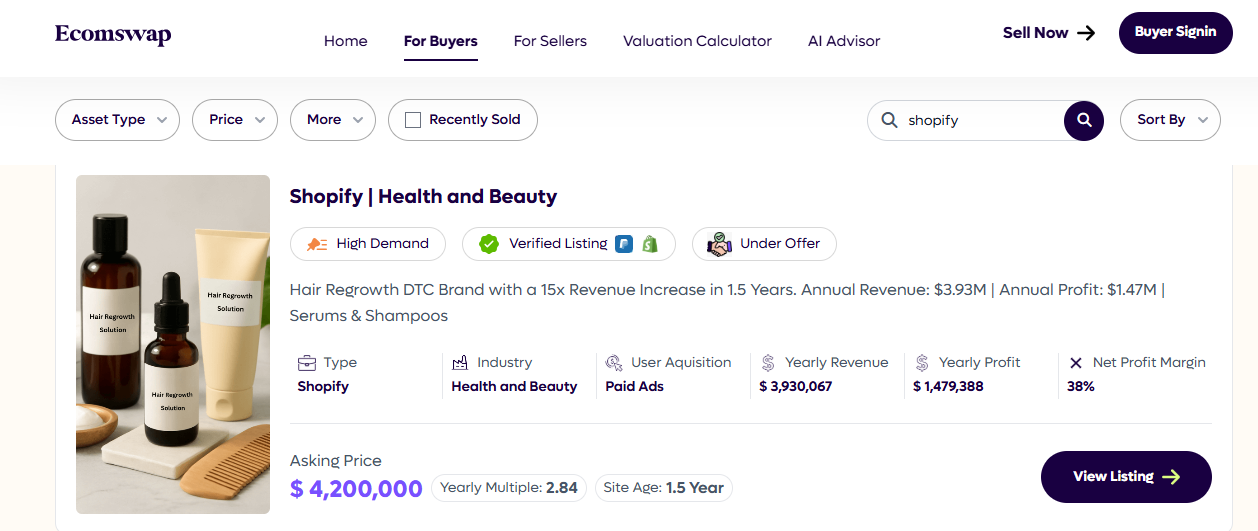 Shortlist 5 to 10 stores that match your brief from places like Ecomswap and other reputable operator groups. Curated marketplaces typically pre-verify profit and traffic, publish a profit multiple, and explain their process for offers and inspections. That saves time compared with raw, unvetted listings.