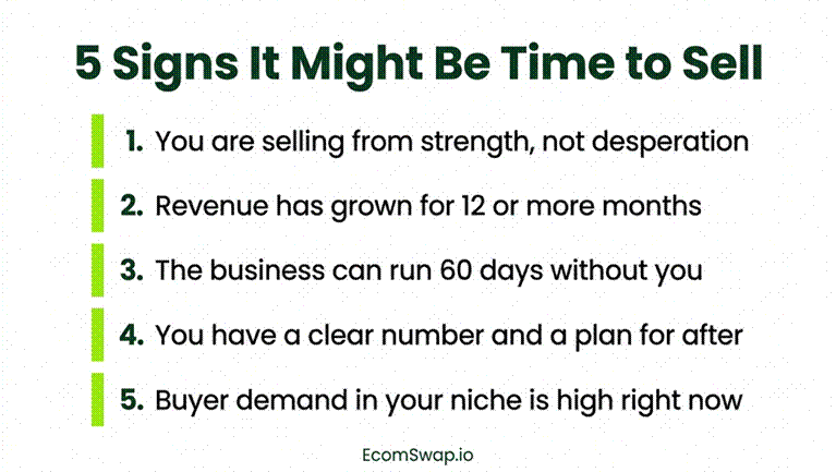 These signals come from EcomSwap’s direct experience running exits for DTC and FBA founders in 2025 and 2026. They are not theoretical. They are patterns from real deals, real timelines, and real outcomes.
